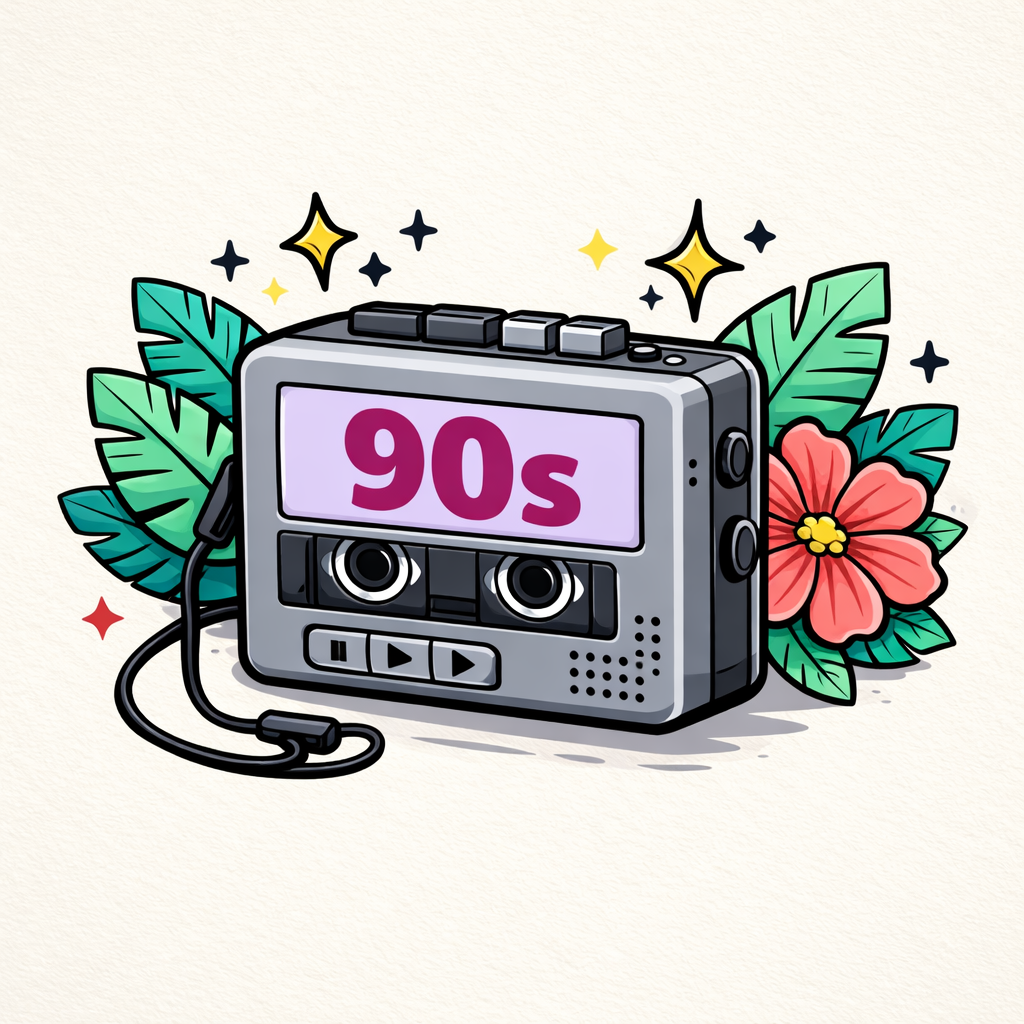 Retro 90s Audio Cassette Tape Illustration for Album Cover