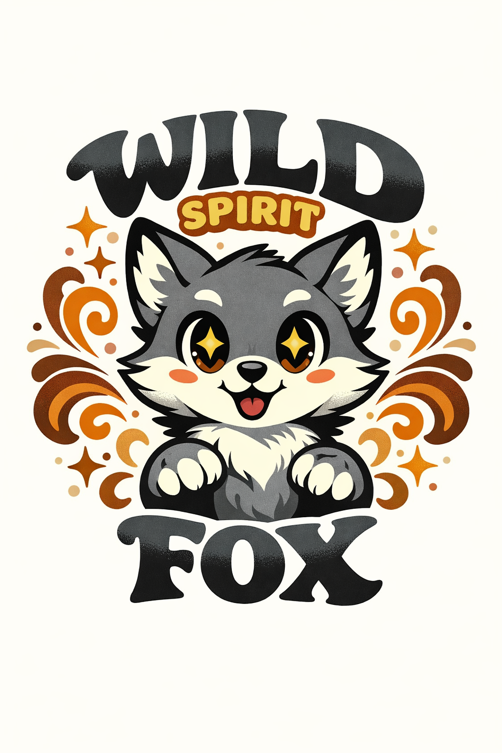 Adorable Gray Fox Cartoon with Wild Spirit T-Shirt