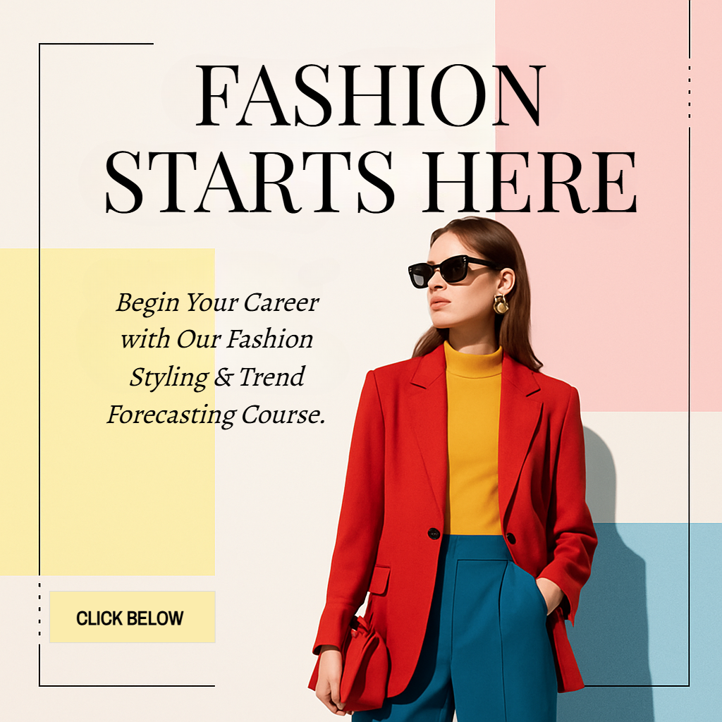 Modern Fashion Advertisement with Bold Text and Model Banner