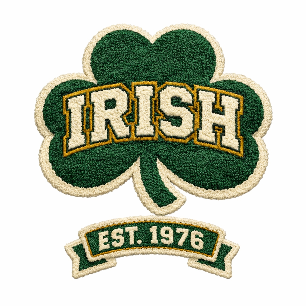 Embroidered Irish Shamrock Patch with Vintage Design for Hats
