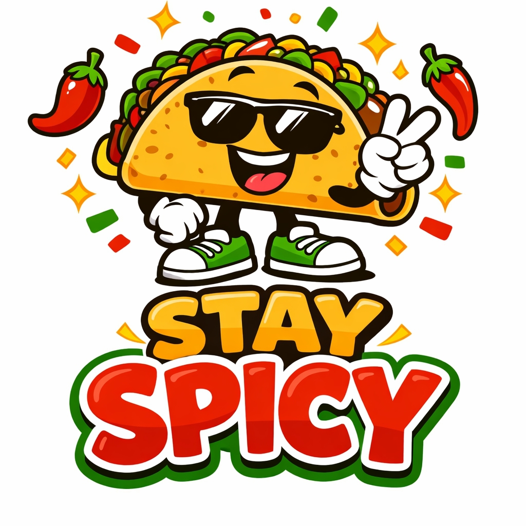 Cheerful Cartoon Taco Character with Stay Spicy Text T-Shirt