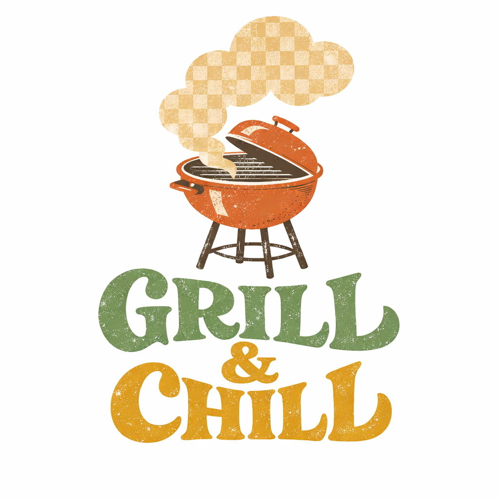 Grill and Chill Cartoon Barbecue Illustration T-shirt