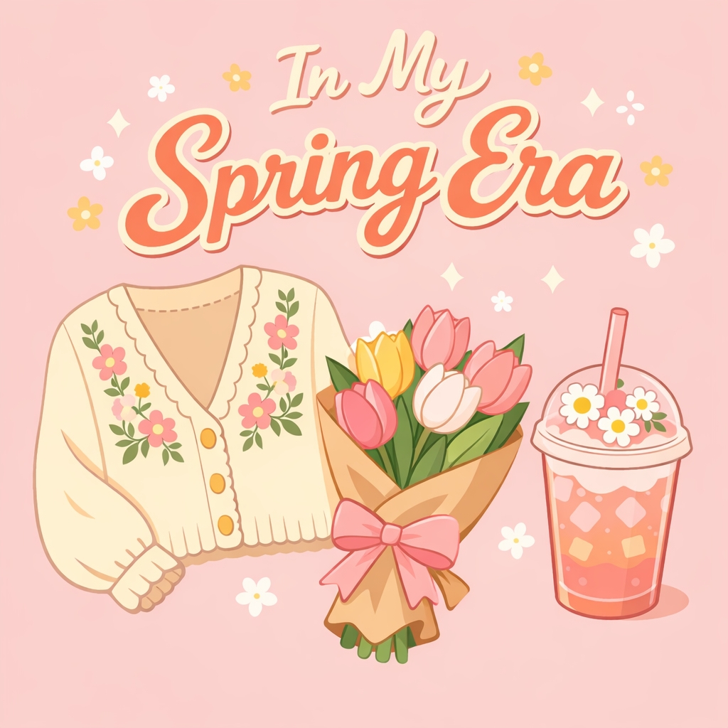 Colorful Spring Text with Flowers and Plants Illustration Mug