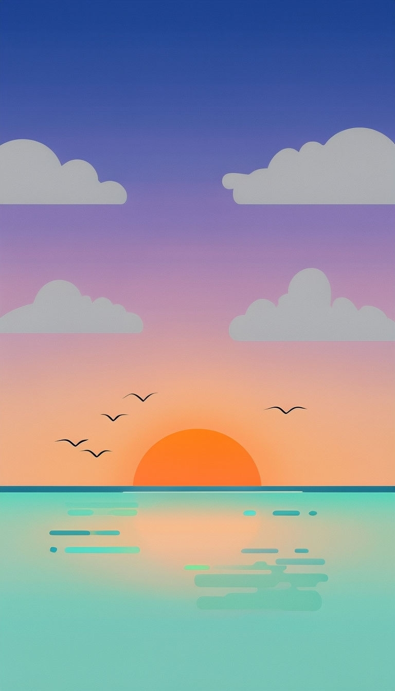 Serene Minimalist Sunrise Vector Illustration for Mobile Wallpaper