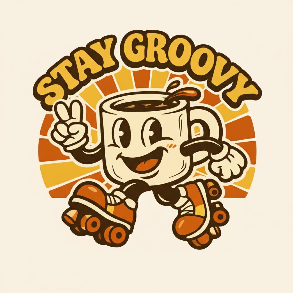 Cheerful Retro Coffee Mug Character Stay Groovy T-Shirt