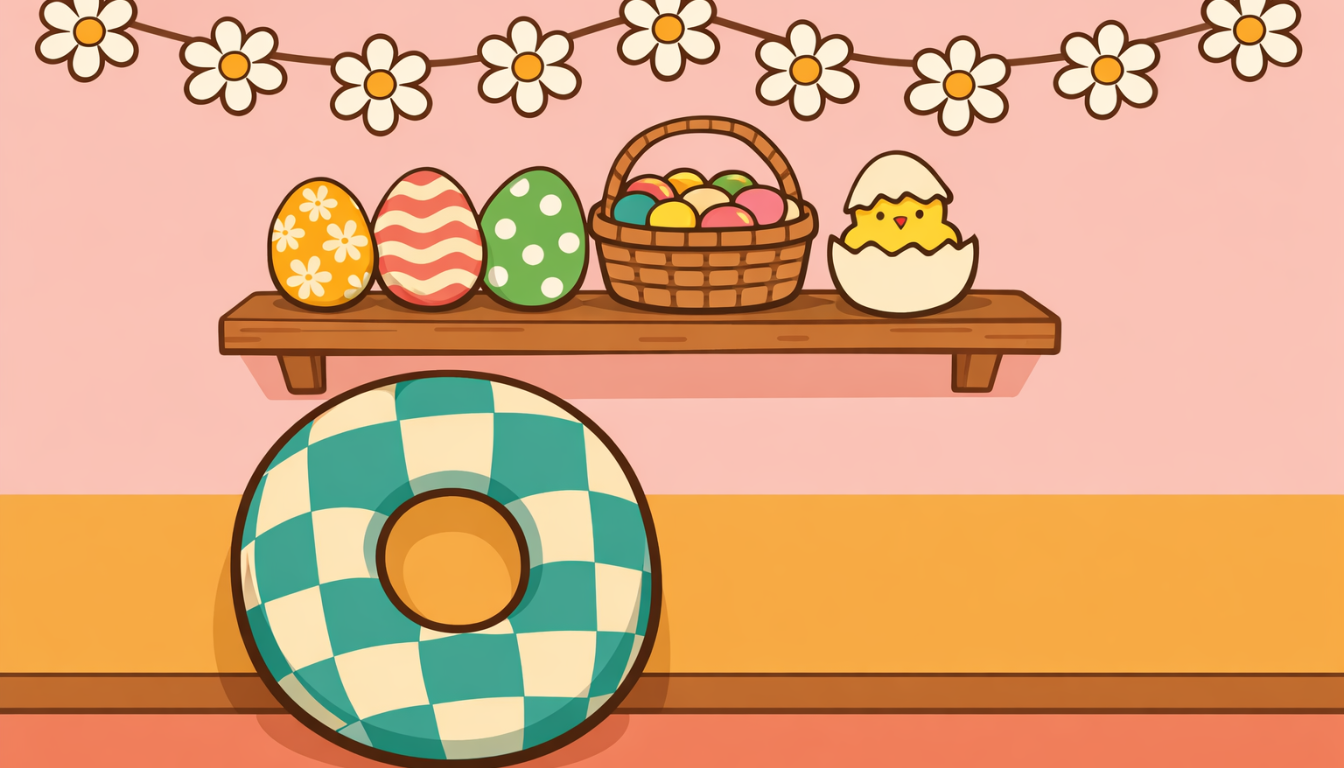 Cheerful Cartoon Easter Shelf Decoration Virtual Background