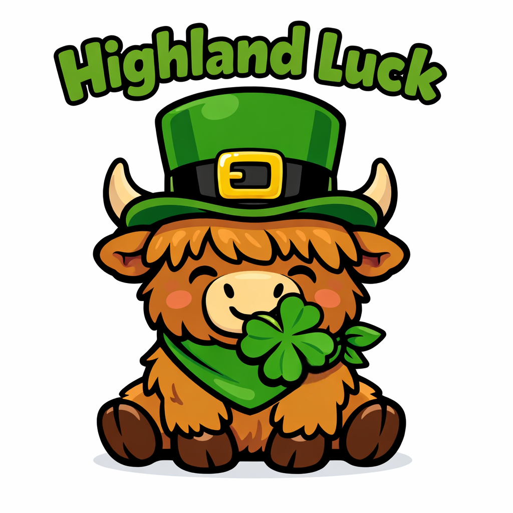 Cheerful Cartoon Highland Cow with Leprechaun Hat Sticker