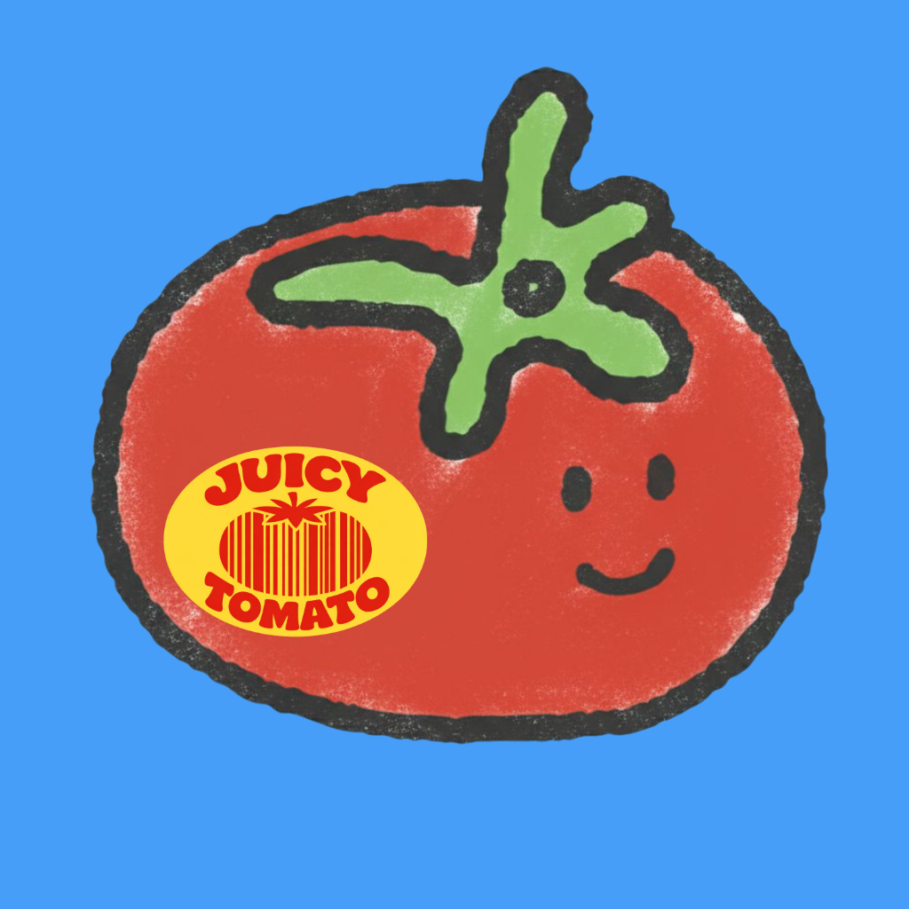 Playful Tomato Illustration with Fun Text Sticker