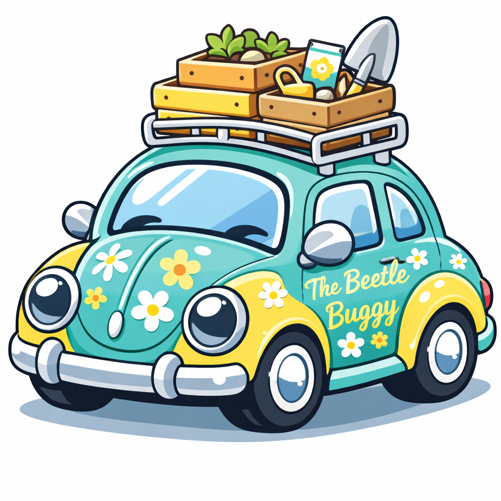 Vibrant Cartoon Cute Beetle Car with Surfboard Sticker
