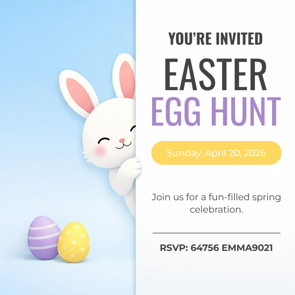Cheerful Easter Egg Hunt Invitation Card with Bunny Design