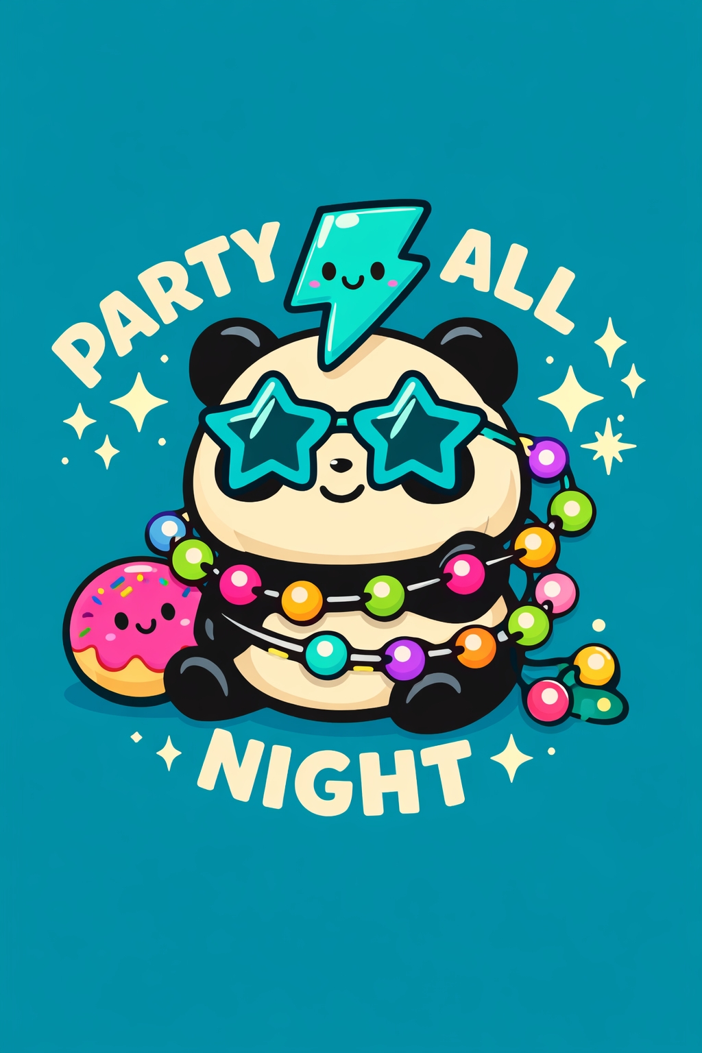 Cheerful Panda with Star Glasses and Party Elements T-Shirt