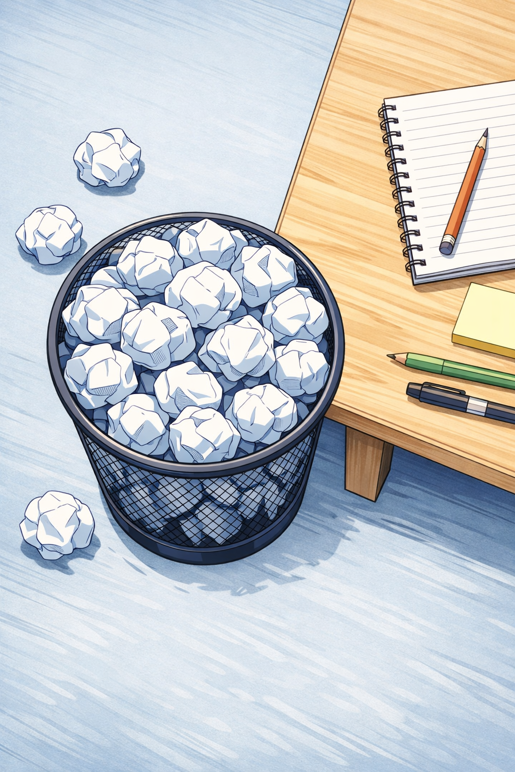 Cluttered Desk Scene with Stationery and Papers Illustration Mobile Wallpaper
