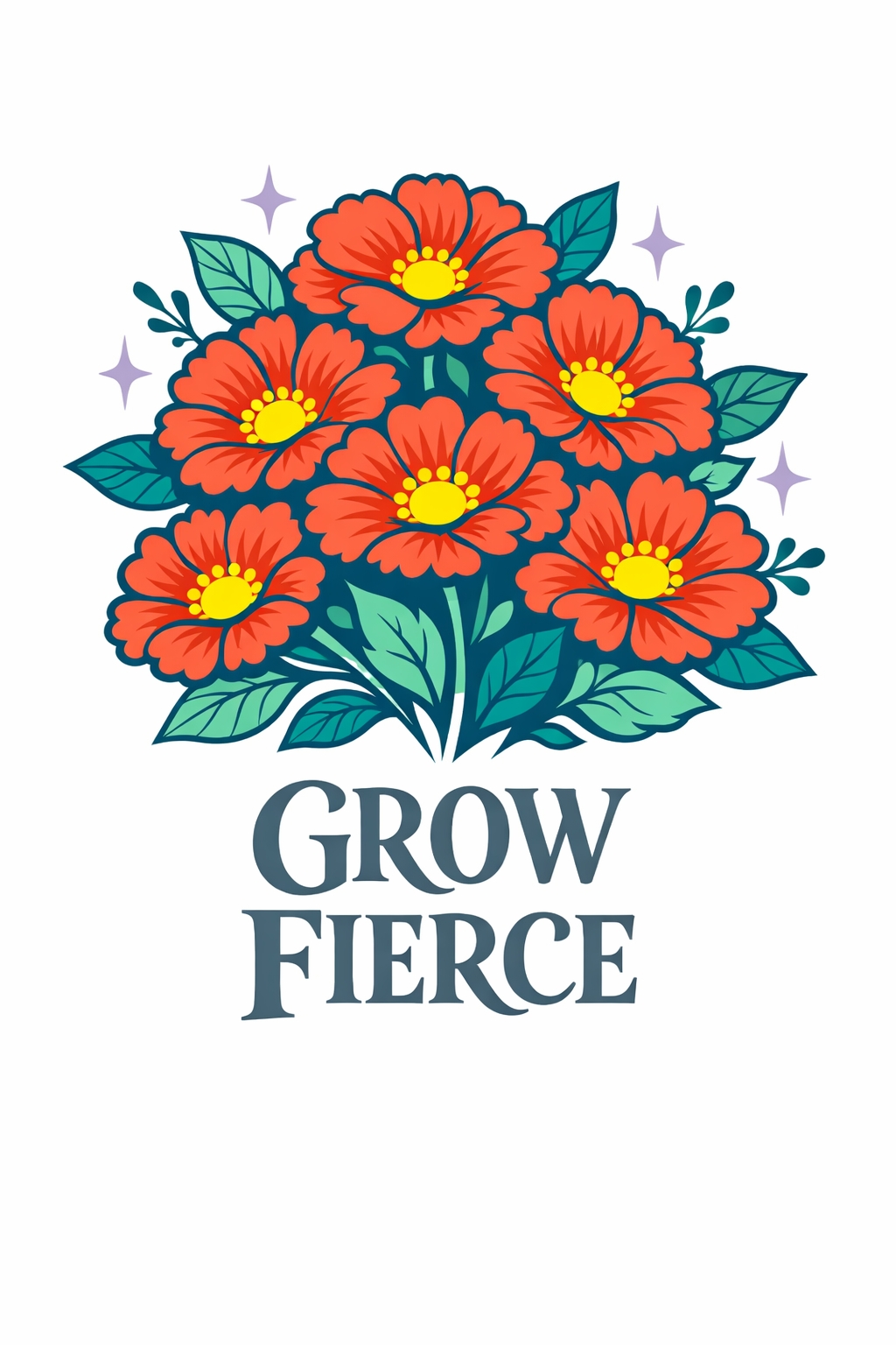 Vibrant Red Flower Bouquet with Grow Fierce Text T-Shirt