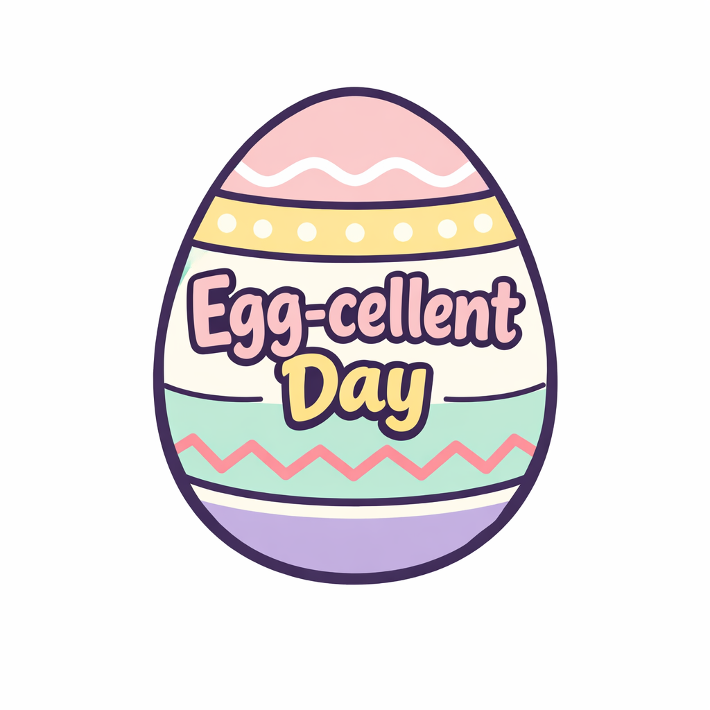 Colorful Cartoon Easter Egg with Egg-cellent Day Text Sticker