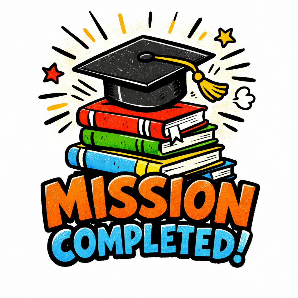 Colorful Graduation Cap and Books with Mission Completed T-Shirt
