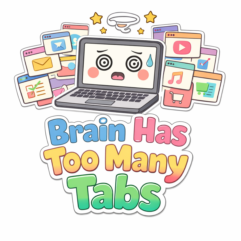 Minimalist My Brain's Got Too Many Tabs Open Sticker