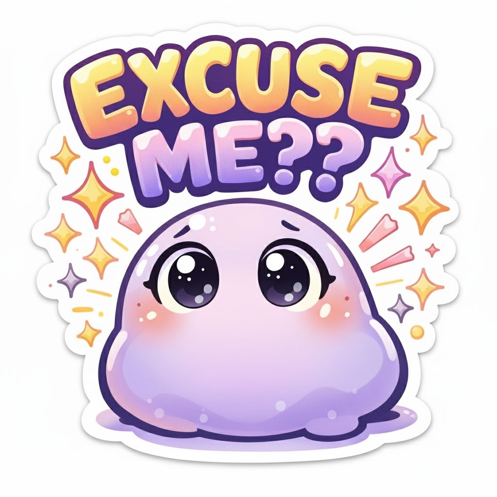 Cute Cartoon Purple Blob with 'Excuse Me??' Text Sticker