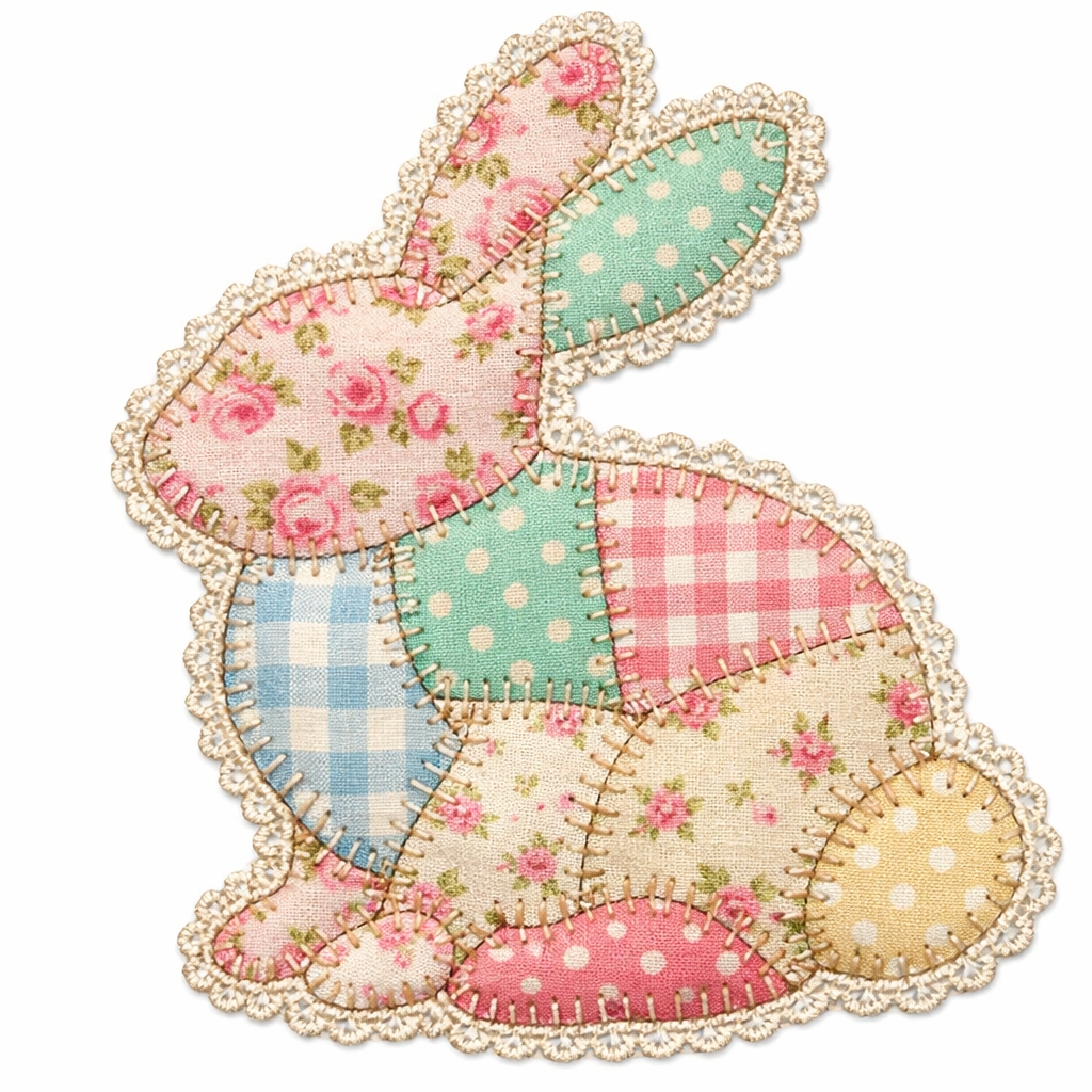 Charming Patchwork Bunny Illustration for Cozy T-Shirt