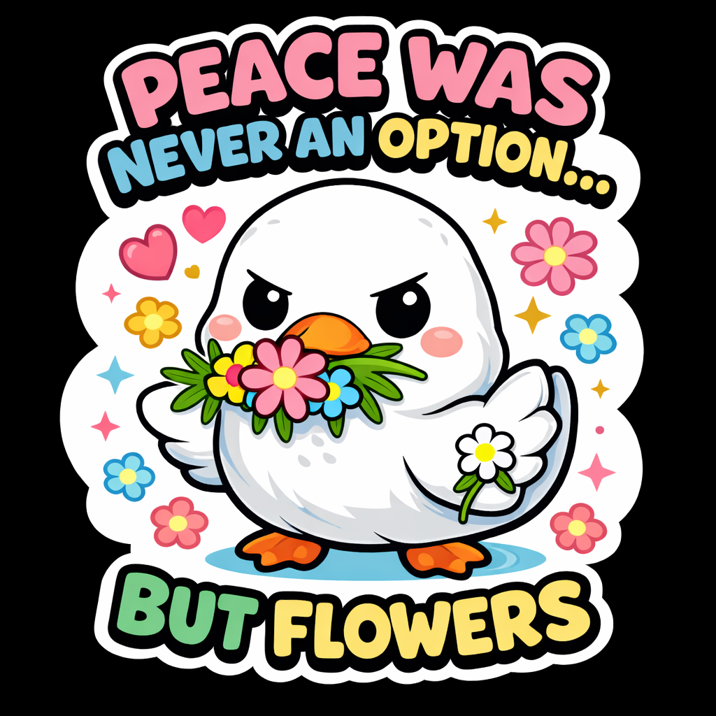 Cheerful Cartoon Duck with Flower Head Illustration Sticker