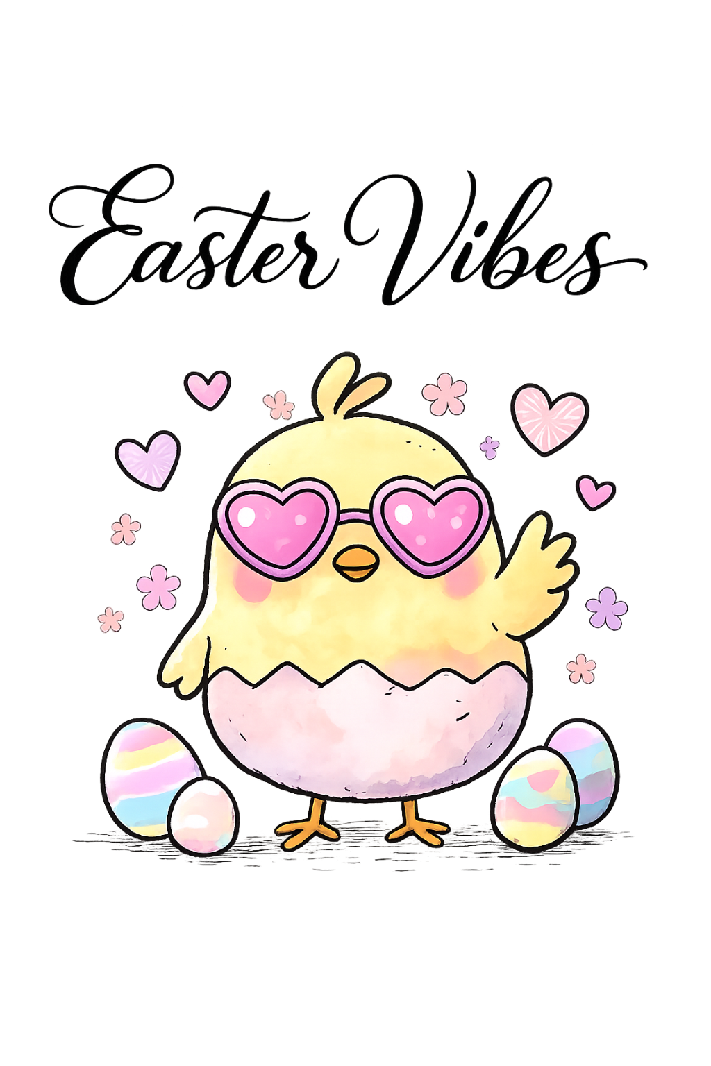 Cute Cartoon Chick with Easter Eggs and Hearts T-Shirt