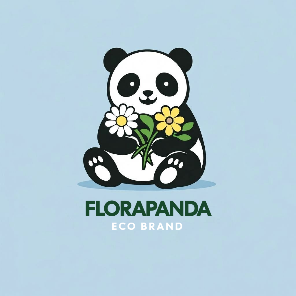 Cute Cartoon Panda with Flowers Logo Design for Eco Brand