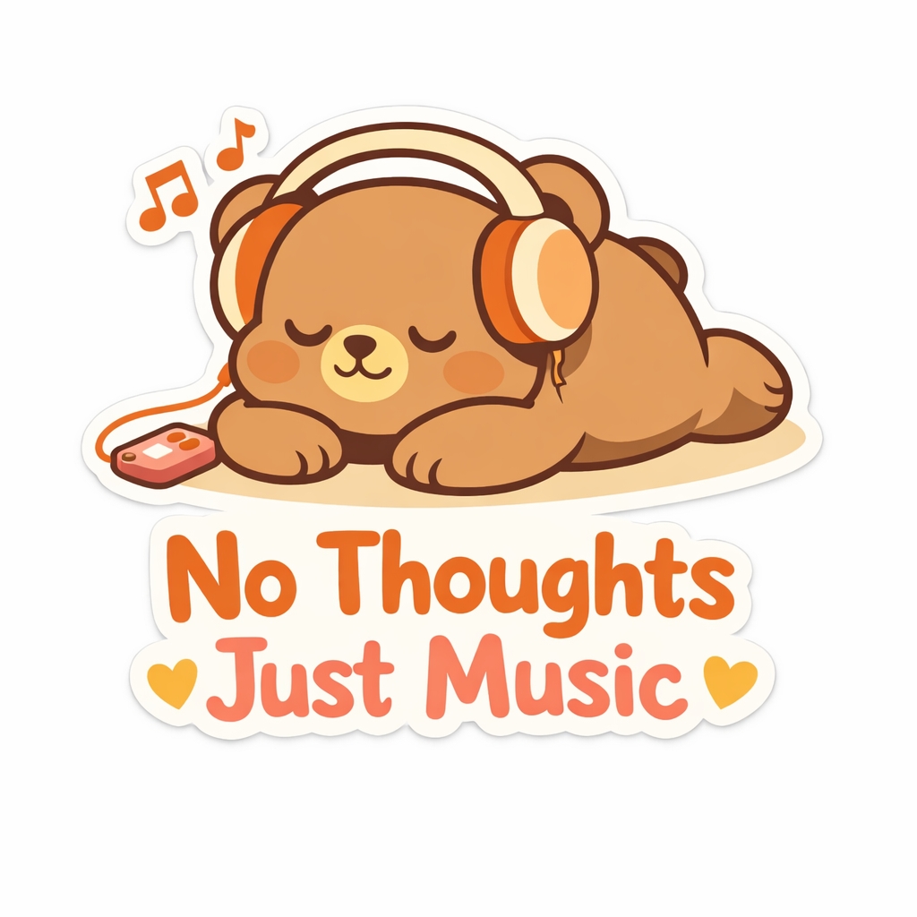 Relaxed Cartoon Bear with Headphones and Music Quote Sticker