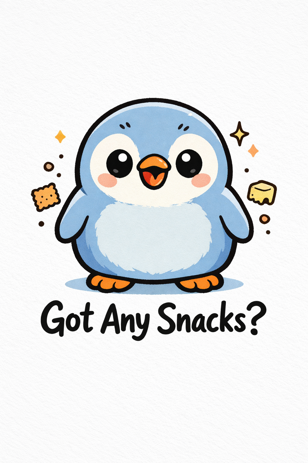 Cute Chibi Penguin Asking for Snacks T-Shirt