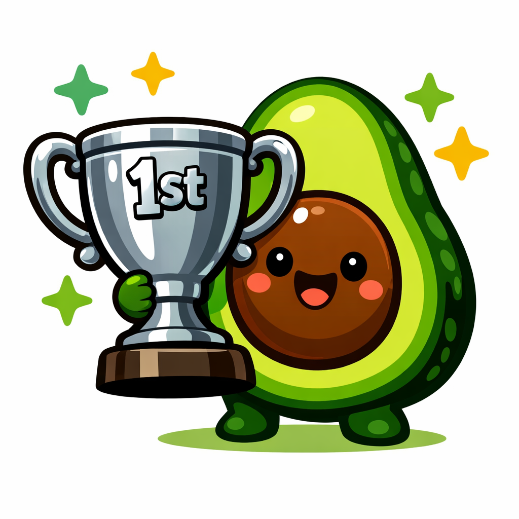 Cute Kawaii Avocado Character with Trophy Cup Sticker