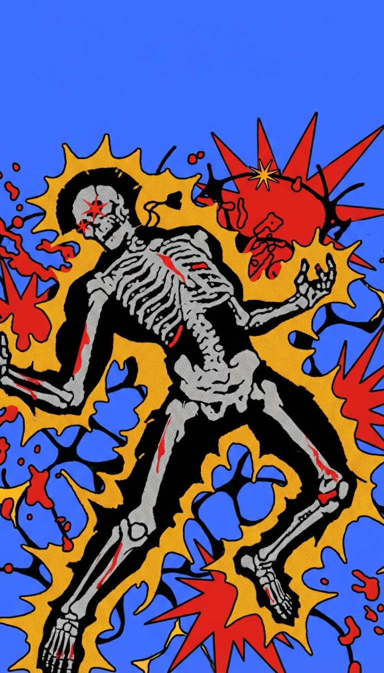 Flaming Skeleton Illustration with Intense Comic Style Mobile Wallpaper