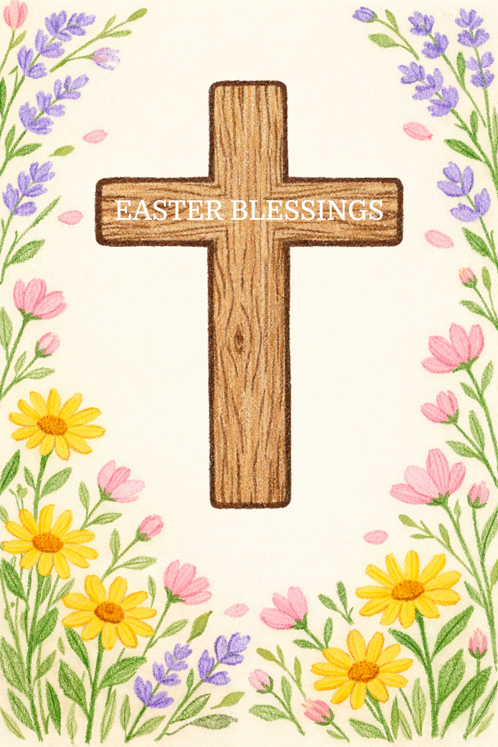 Easter Celebration Wooden Cross with Flowers Greeting Card