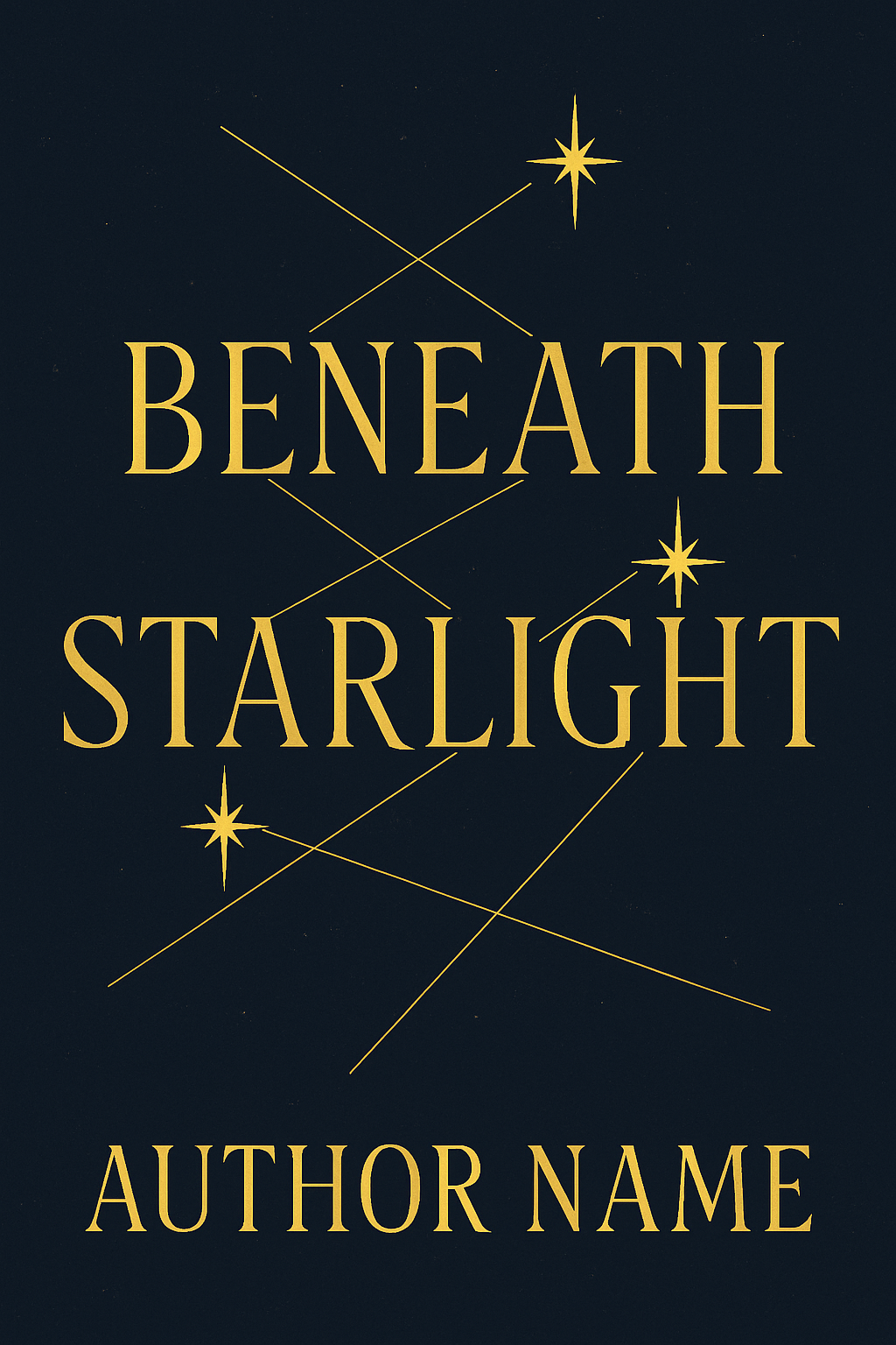 Elegant Beneath Starlight Book Cover Design in Gold and Navy EBook Cover