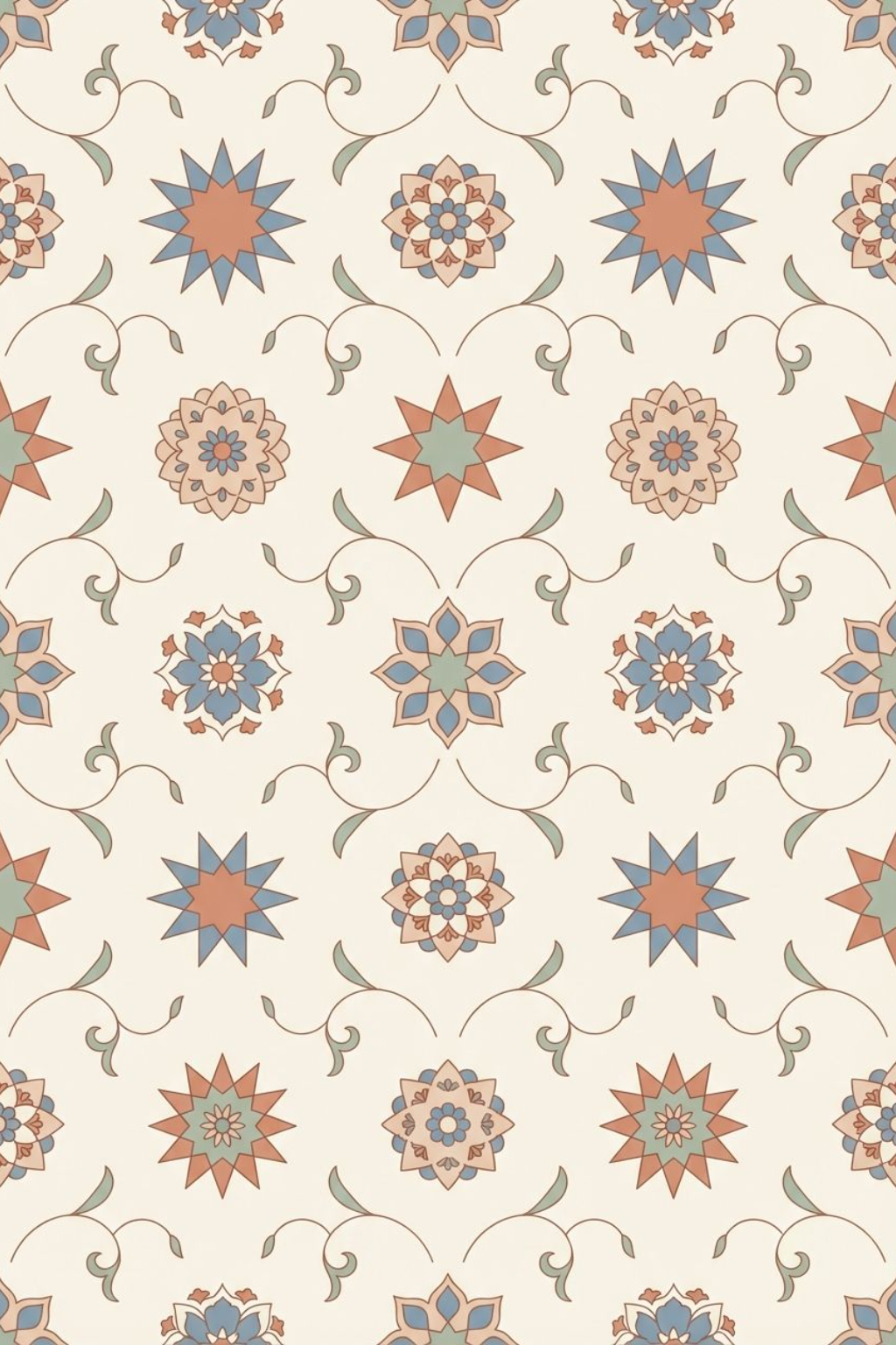 Symmetrical Floral Geometric Pattern in Warm Colors Seamless Pattern
