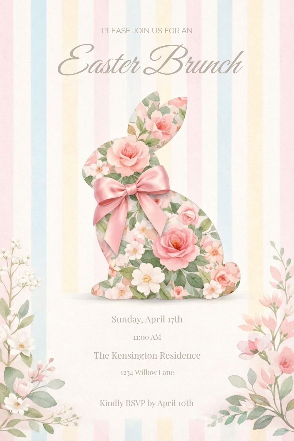 Elegant Floral Easter Brunch Invitation with Bunny Silhouette Card