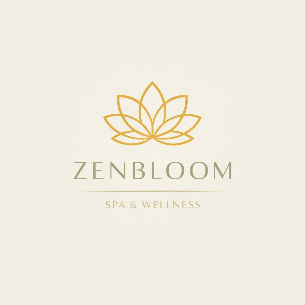 Elegant Golden Lotus Flower ZenBloom Logo Design for Spa