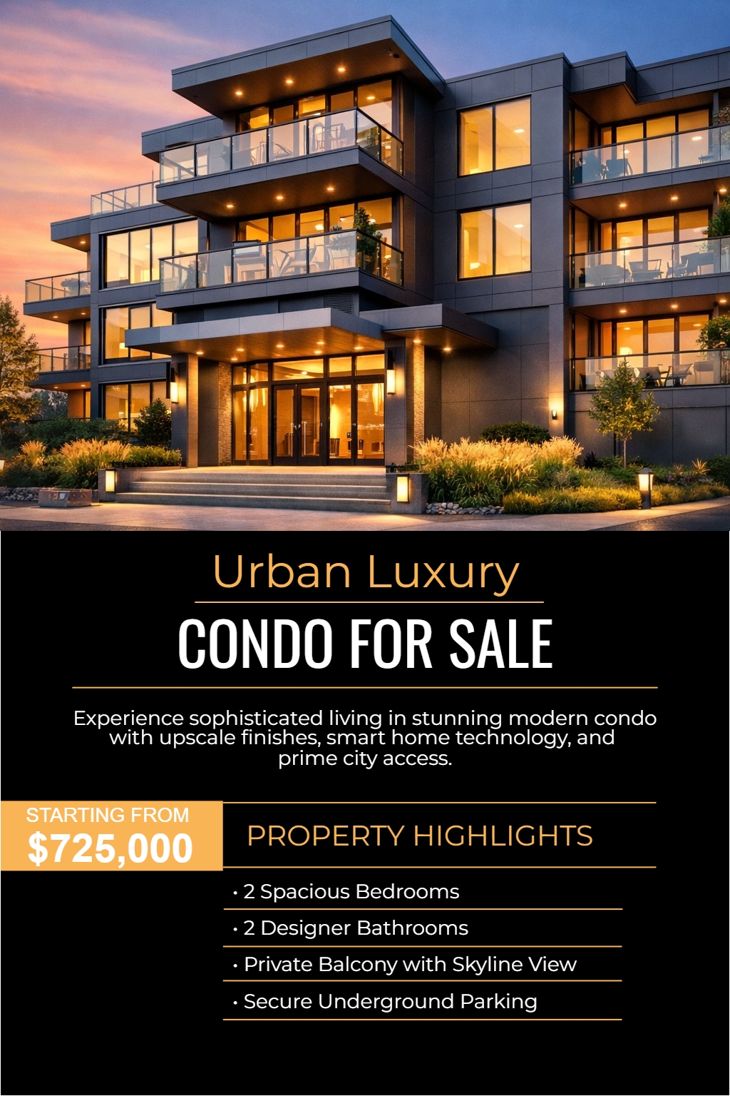 Modern Urban Luxury Condo Advertisement for Sale Flyer