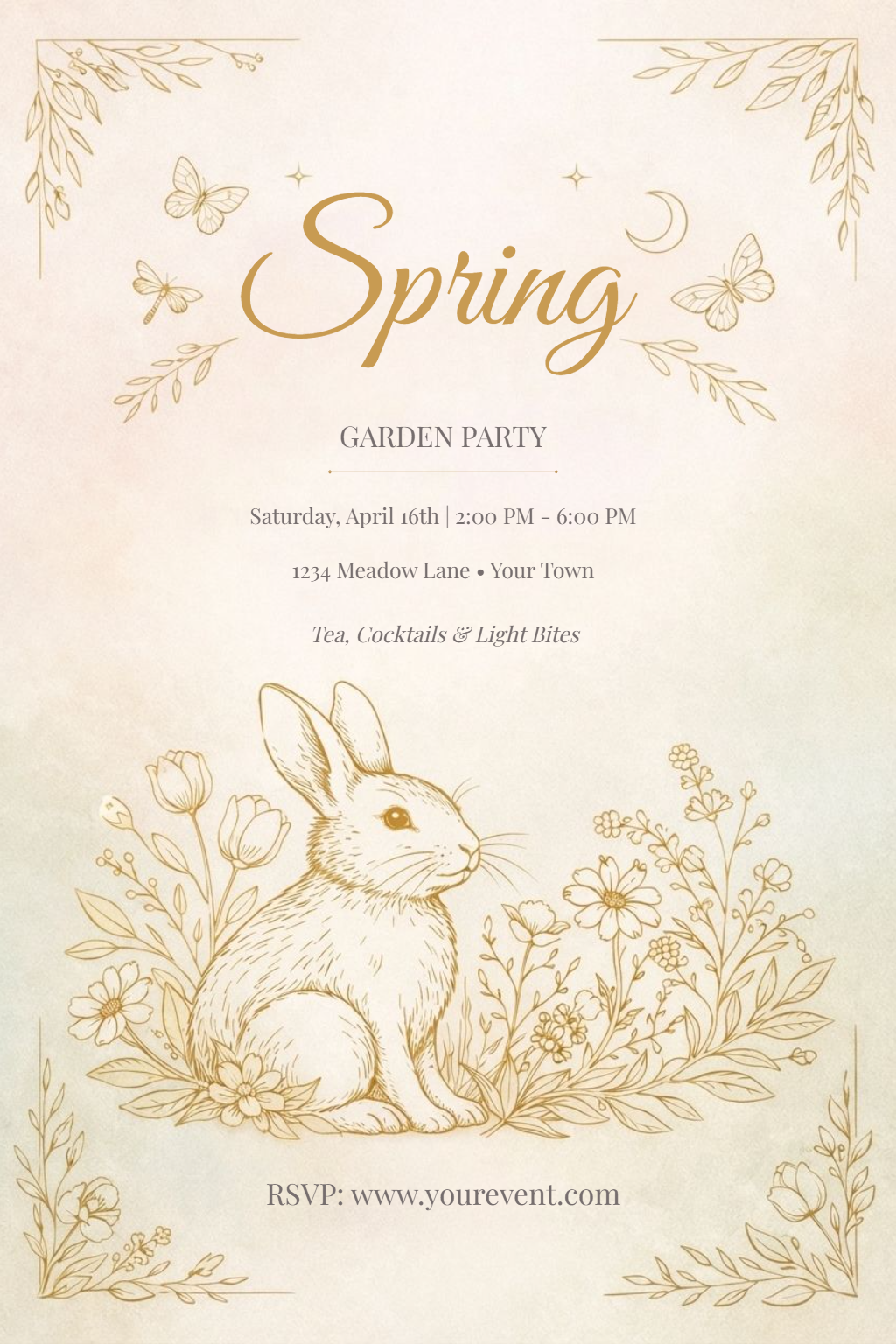 Vintage Spring Garden Party Invitation with Floral Illustrations