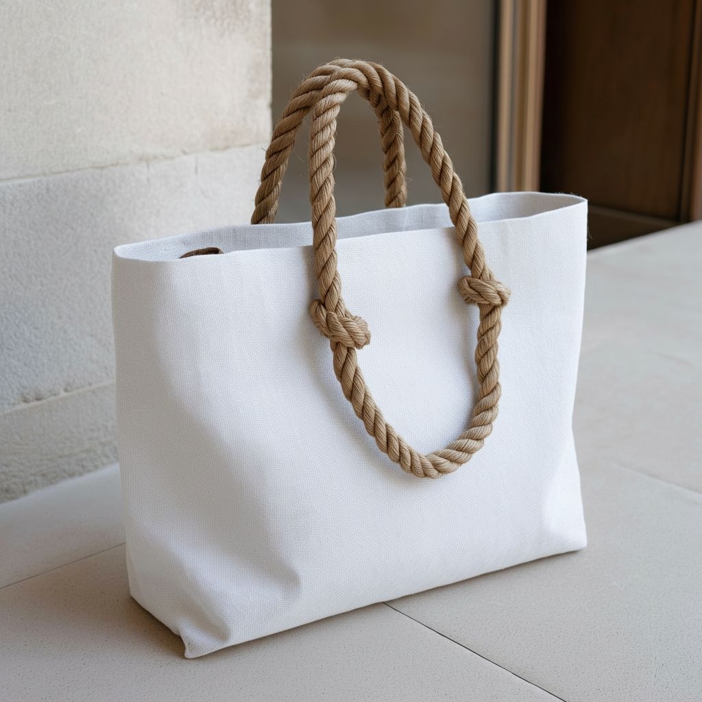 Minimalist White Tote Bag with Nautical Rope Handles Mockup