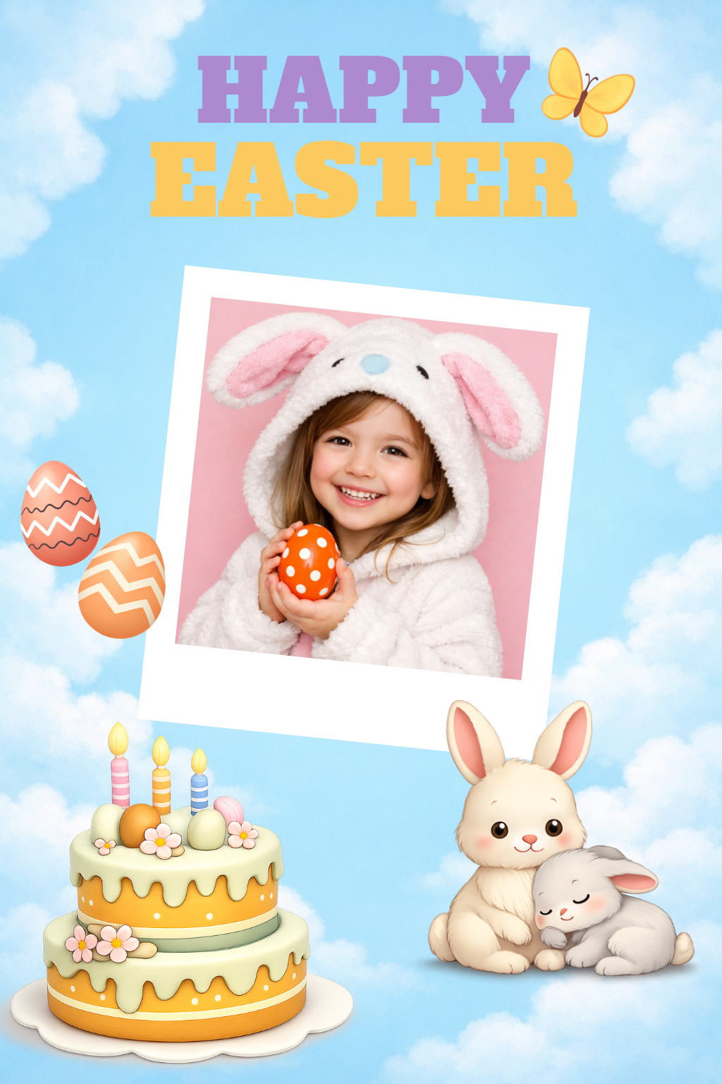Festive Easter Greeting Card with Adorable Bunny and Cake Design Cards & Invites