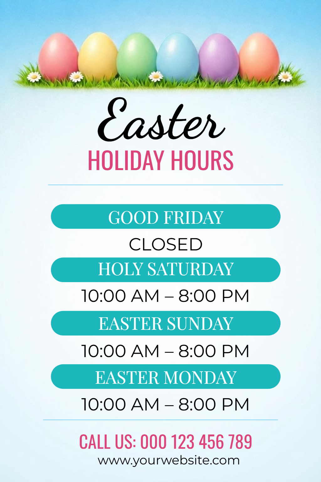 Festive Easter Holiday Hours Announcement Poster for Events Cards & Invites