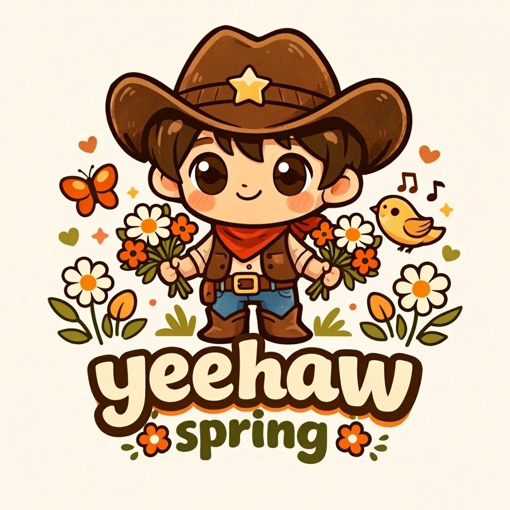 Cute Chibi Cowboy Character with Flowers and Yeehaw Spring Text T-Shirt