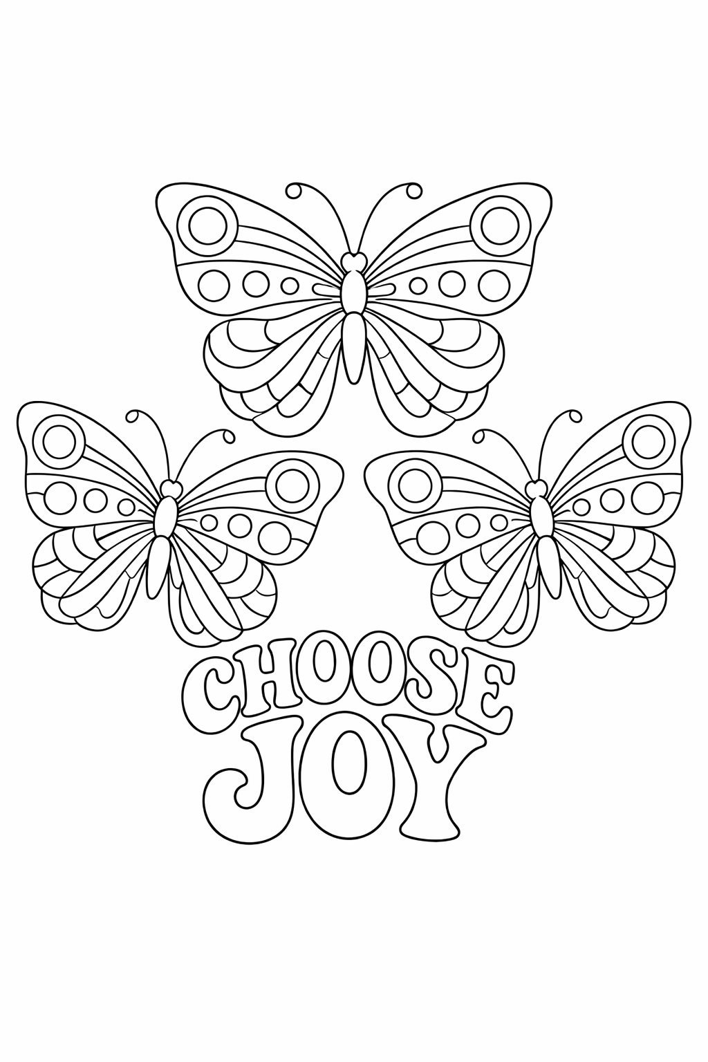 Joyful Butterfly Design with 'Choose Joy' Text Coloring Page