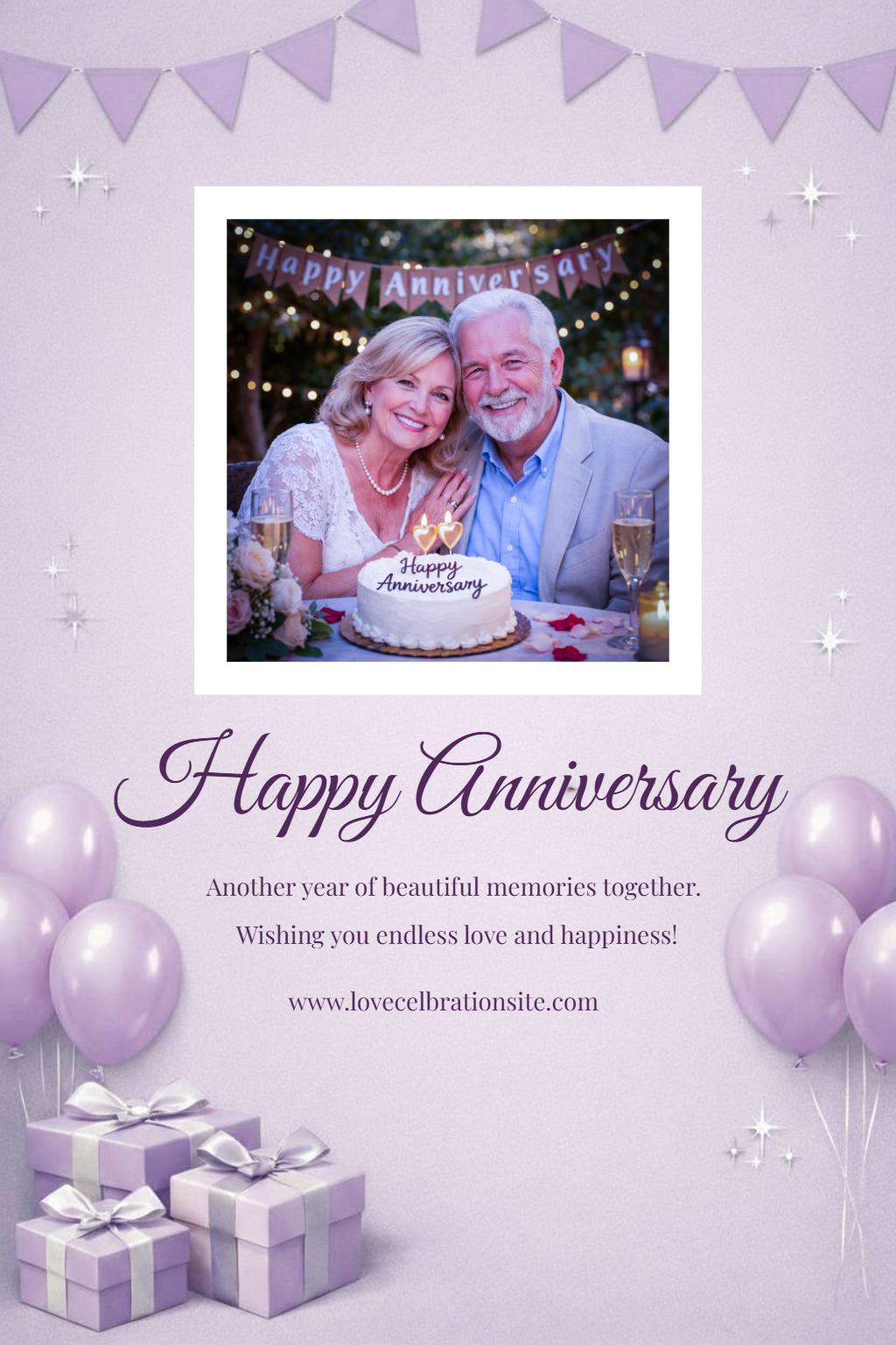 Joyful Elderly Couple Anniversary Card Design Flyer