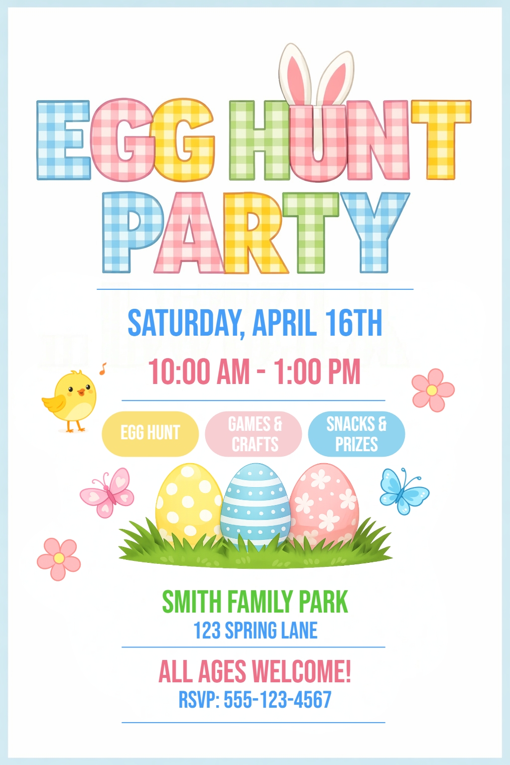 Cheerful Easter Egg Hunt Invitation Card with Bunny Design