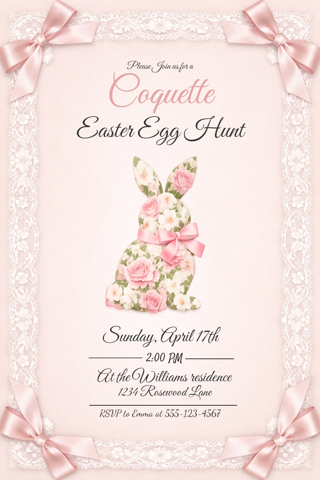 Elegant Coquette Easter Egg Hunt Invitation Poster Design