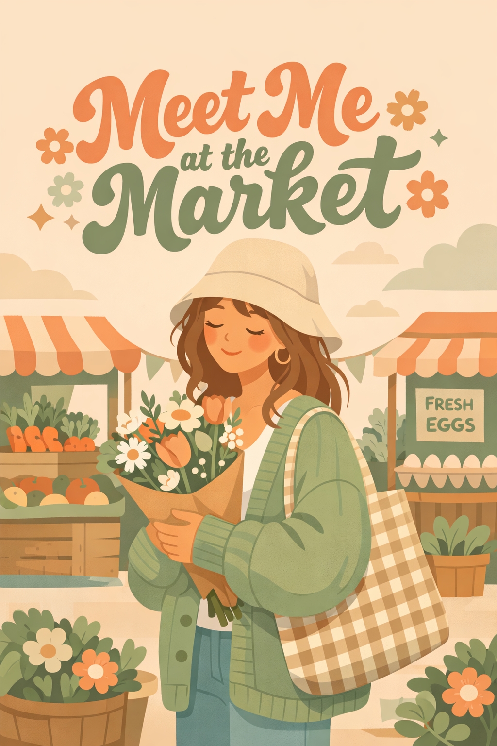 Whimsical Vintage Market Scene with Cheerful Woman Poster