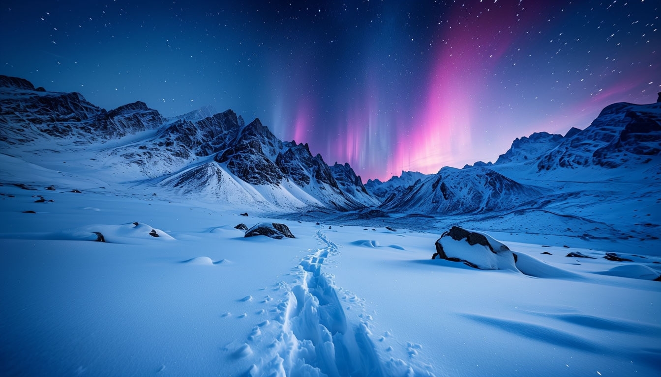 Serene Winter Mountain Landscape with Night Sky Virtual Background