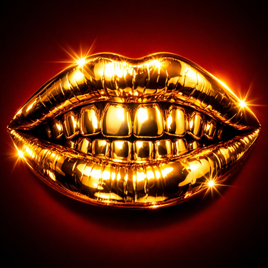 Luxurious Gold-Plated Lips Close-Up Digital Art Creation