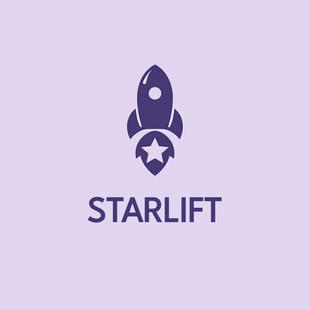 Minimalist Dark Purple Rocket Ship Logo Design for Starlift
