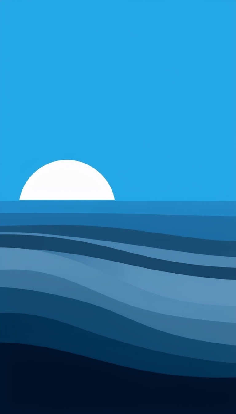 Serene Minimalist Seascape Illustration at Sunrise Mobile Wallpaper
