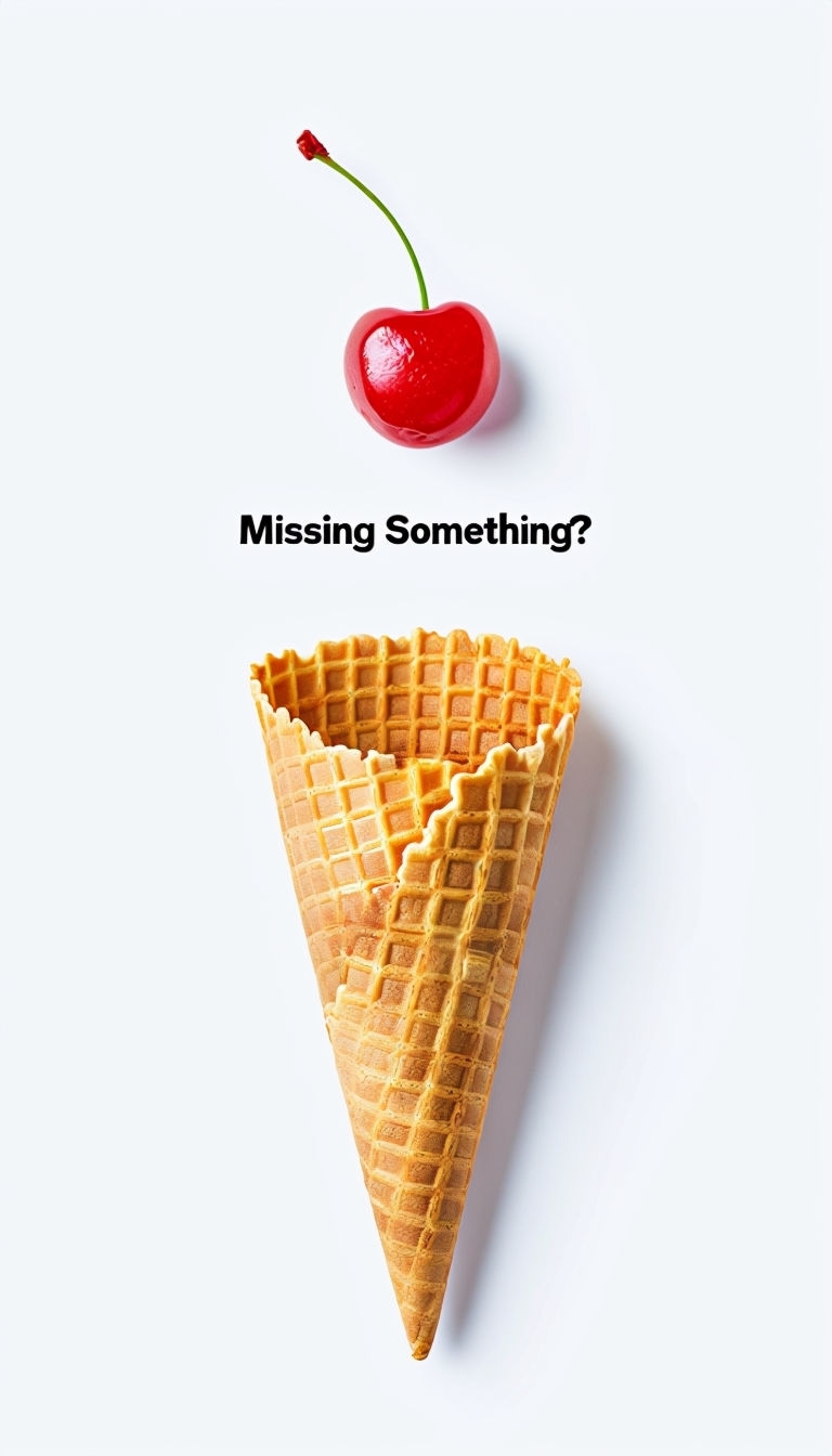 Minimalist Waffle Cone Advertisement with Cherry and Text Ads